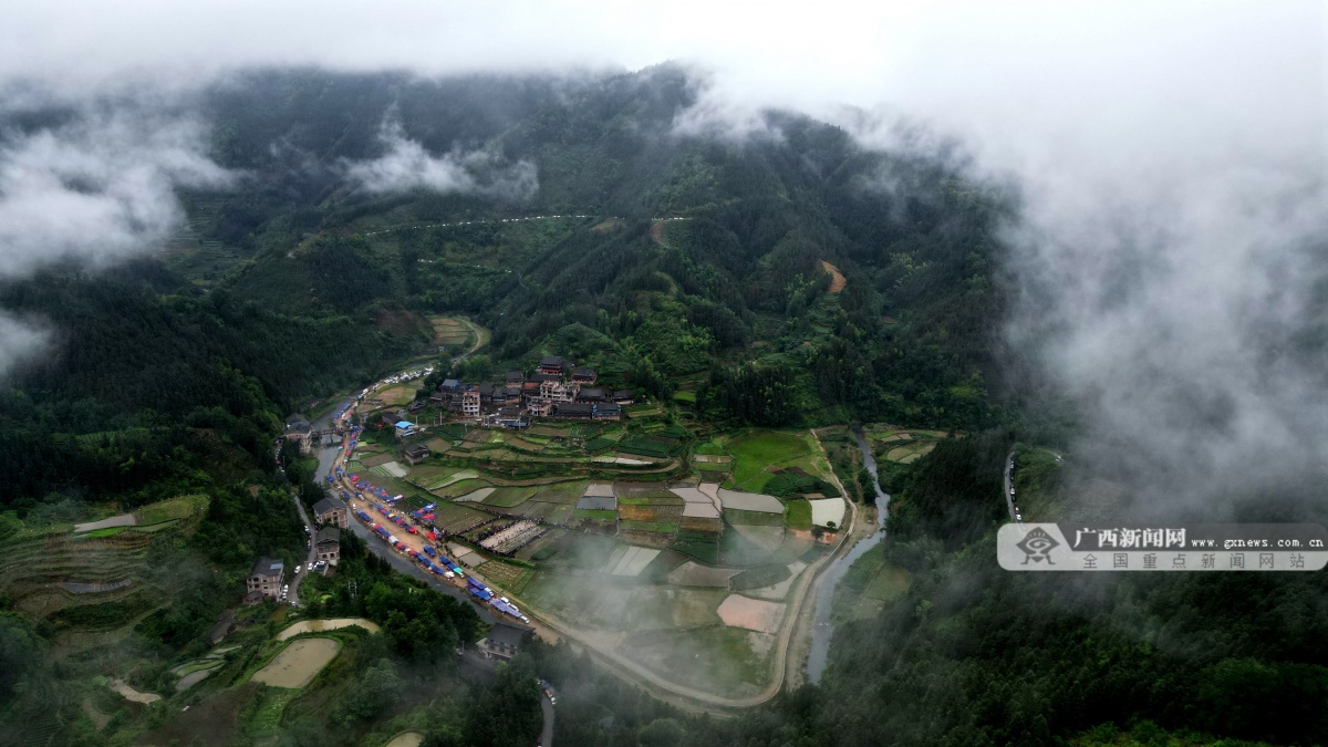 无人机航拍的三江侗族自治县良口乡寨塘村河寨屯风光。龚普康 摄