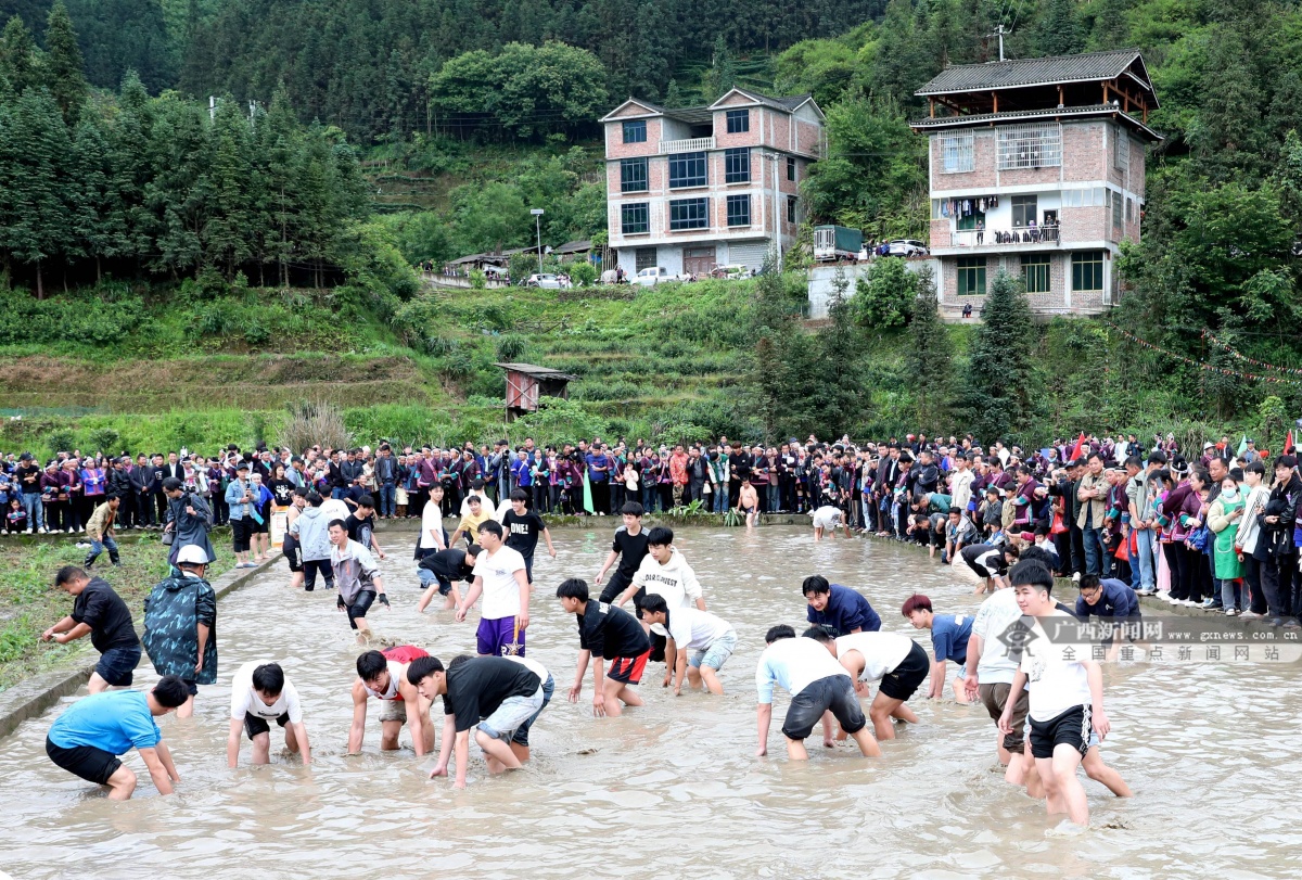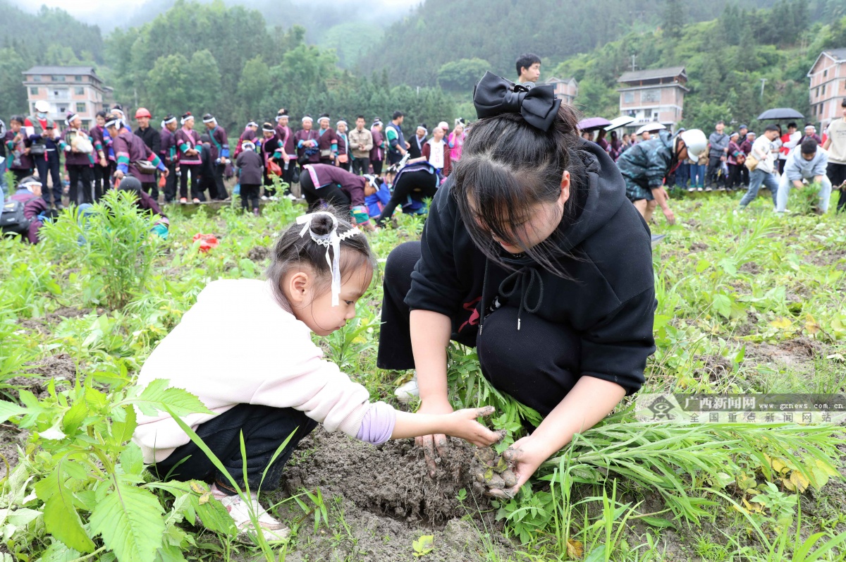 广西新闻网三江5月4日讯(通讯员 龚普康 梁秀明)5月3日,三江侗族自治县良口乡寨塘村举办第四届黄金小土豆丰收节,当地群众以挖土豆比赛、挑土豆巡游、非遗展演、徒手抓鱼、田间抓土鸡等丰富形式,尽展三江乡村旅游多彩魅力,吸引众多游客前往观赏体验、休闲度假。