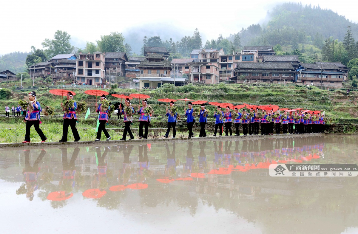 村民们在稻田内唱侗族耶歌。龚普康 摄