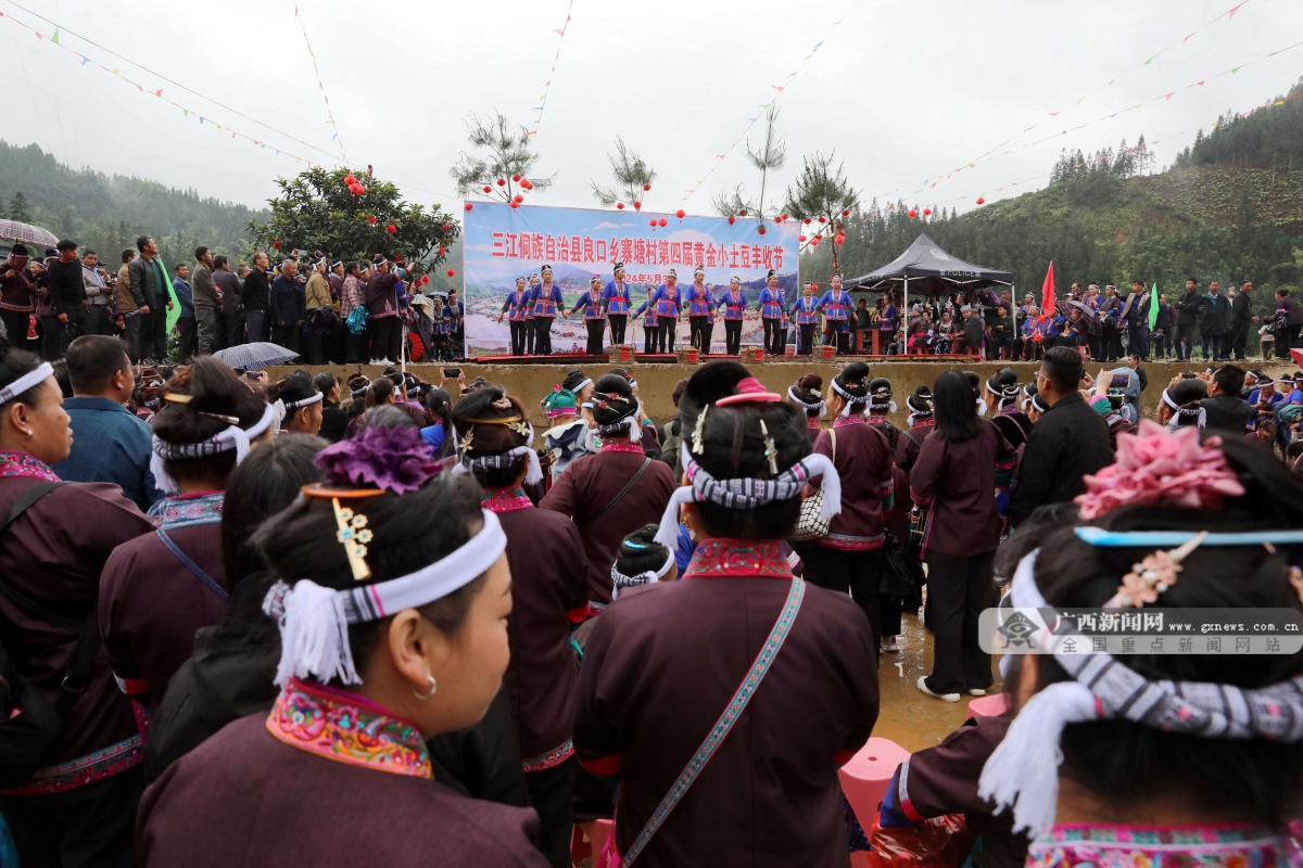 在三江侗族自治县良口乡寨塘村河寨屯,游客在观看文艺表演。龚普康 摄
