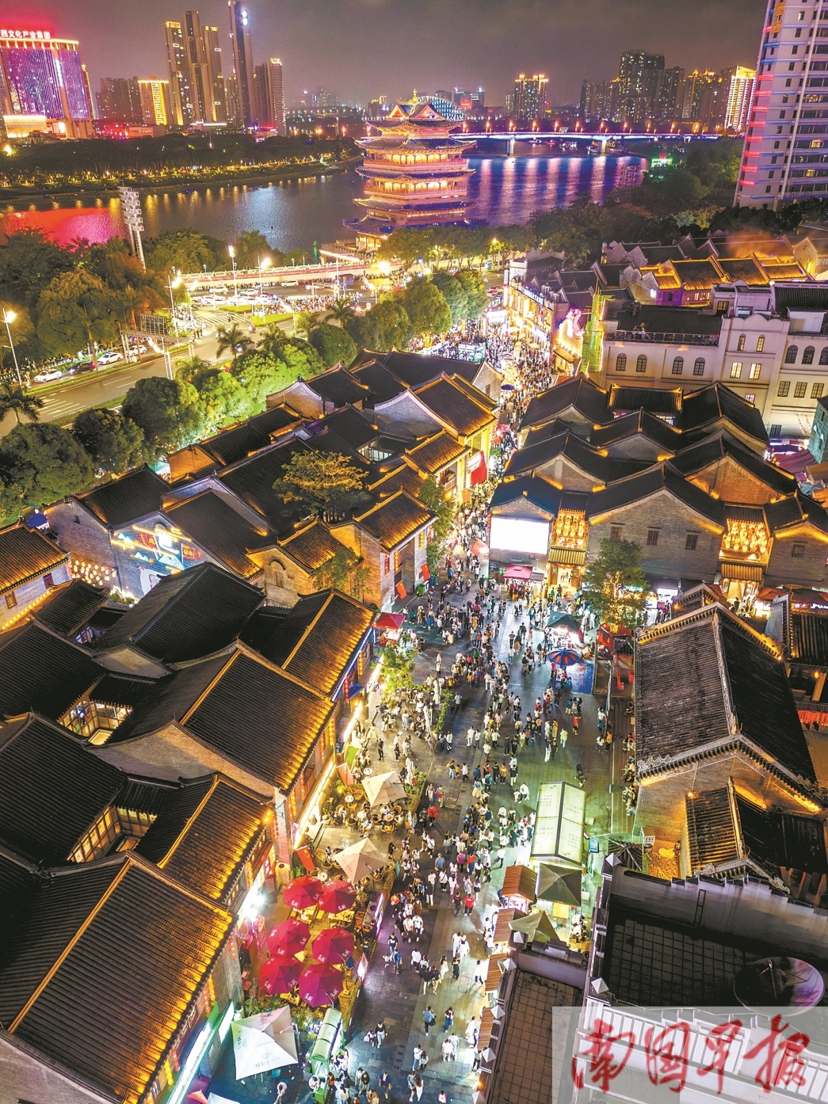 5月2日,众多游客来到合浦县海丝首港景区,感受古港商船往来的繁荣景象和繁华的市井生活。林启波 摄