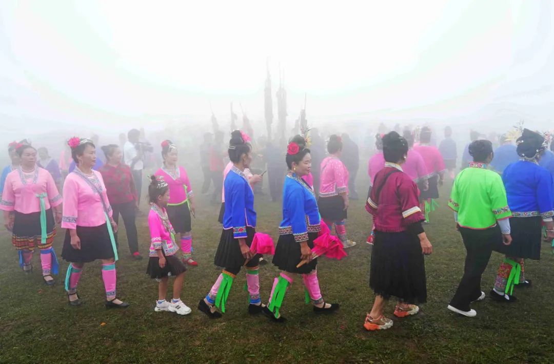 当天,元宝村党道山大雾弥漫,鲜艳的杜鹃花在迷雾中若隐若现,呈现出杜鹃花海不一样的美。游客徜徉在杜鹃花海和云雾中,似进入仙境又似走在色彩艳丽的油画之中,十分惬意。当地苗族群众也穿上苗族服饰,在花海中跳起了广场舞,充分体现了苗族群众在党的民族政策的照耀下,好日子天天都在歌里过的精神风貌。