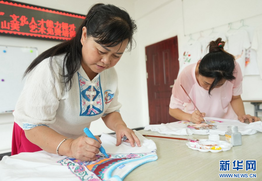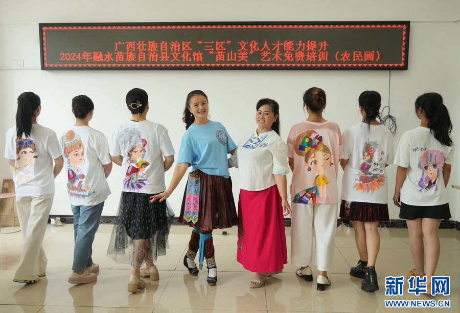 日前,由广西柳州市融水苗族自治县文化馆举办的“苗山美”农民画免费培训班结业,经过10多天培训,20多名农民画爱好者在提升创作水平的同时,还掌握了在文化衫上创作农民画的技艺,为把农民画这一非遗融入文创产品打下了基础。(龙涛 缪庆宜)