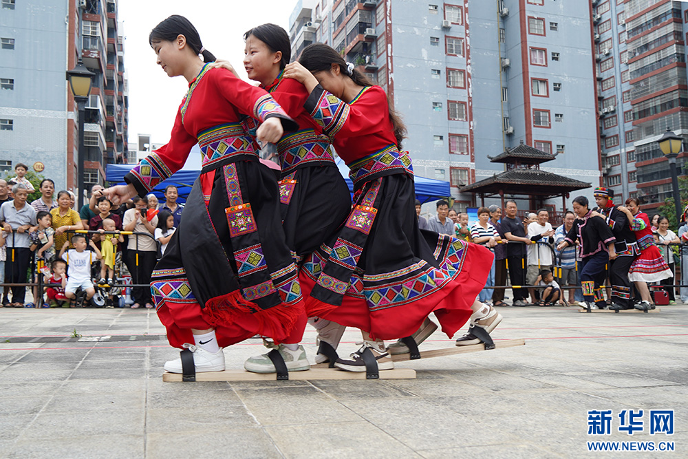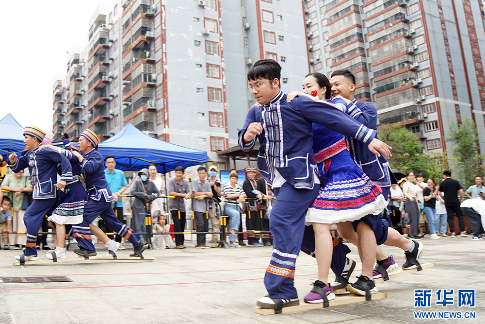 “祝著节”上的三人板鞋竞技活动。新华网 刘君 摄