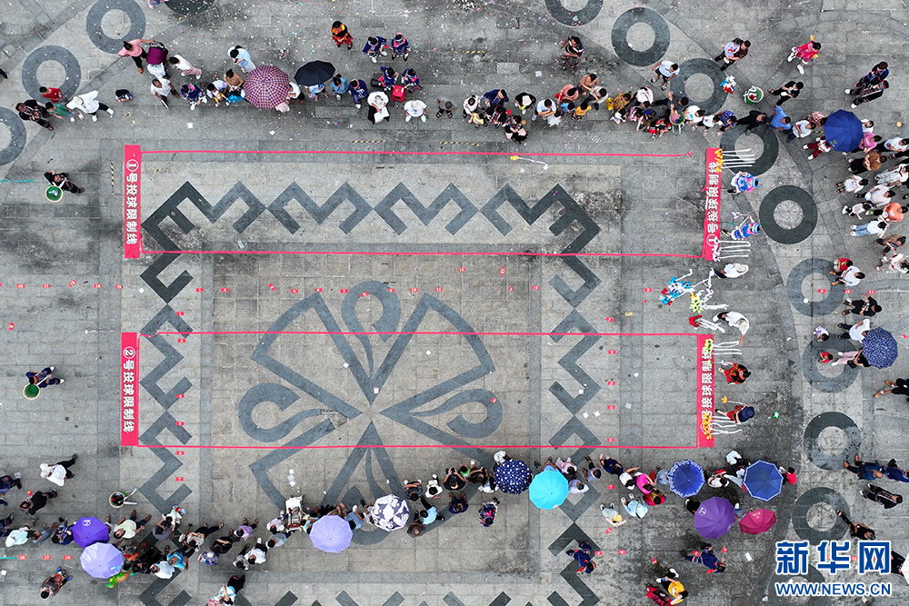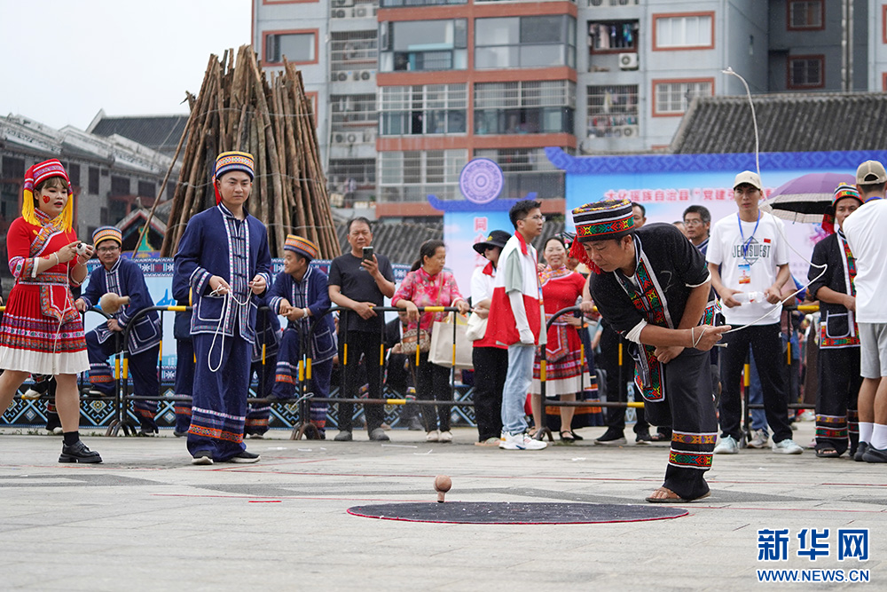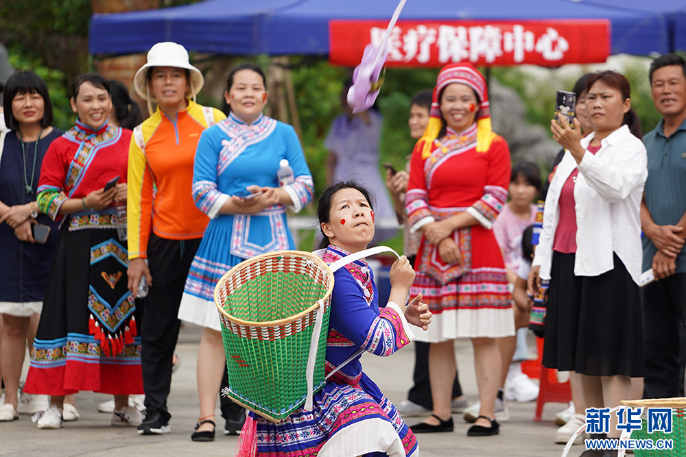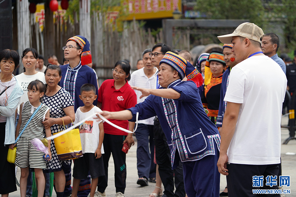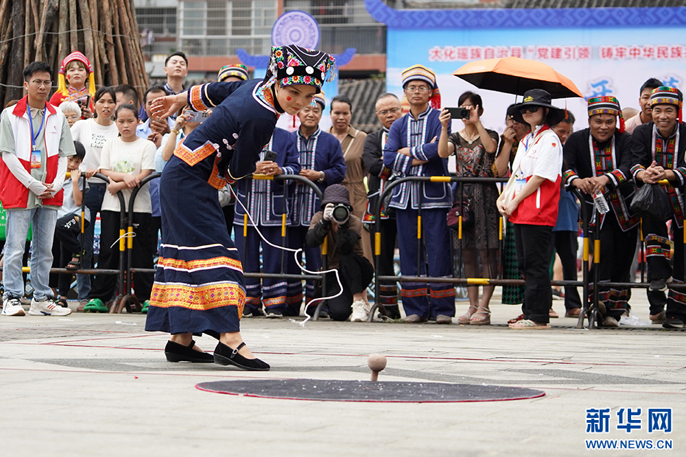 7月3日,广西大化瑶族自治县的各族群众欢聚一堂,通过打陀螺、抛绣球、射弩等丰富多彩的民族体育竞技活动,欢庆一年一度的瑶族传统节日——“祝著节”。