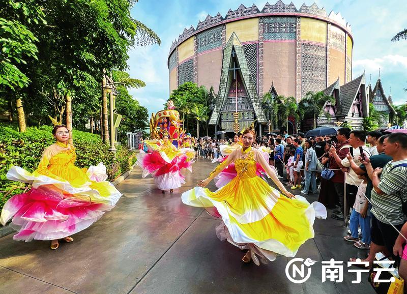 南宁方特“东南亚泼水节”开幕,独特的东南亚风情吸引众多游客。记者