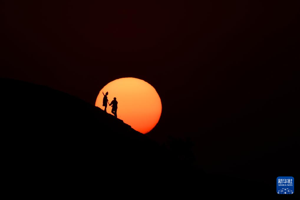 在融水苗族自治县杆洞乡尧告村,村民梁金玉(左)和妻子余兰英走在回家的路上(8月14日摄)。