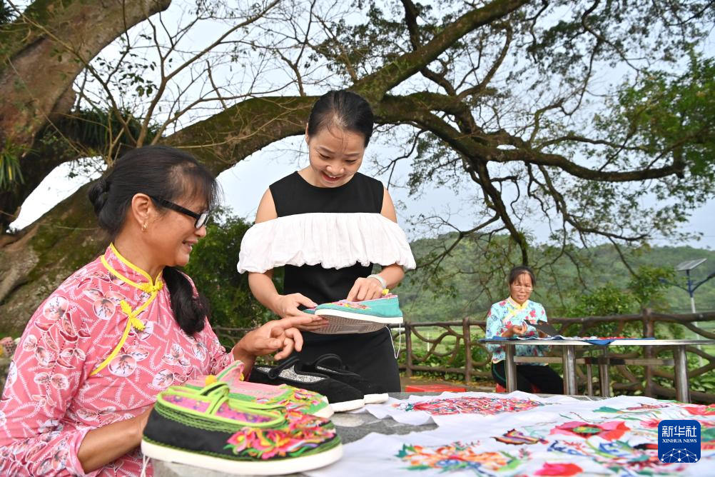 在义圩镇,凌漫丽已带动200多名妇女通过刺绣增加收入,其中很多是“阿奶级”的刺绣能手。