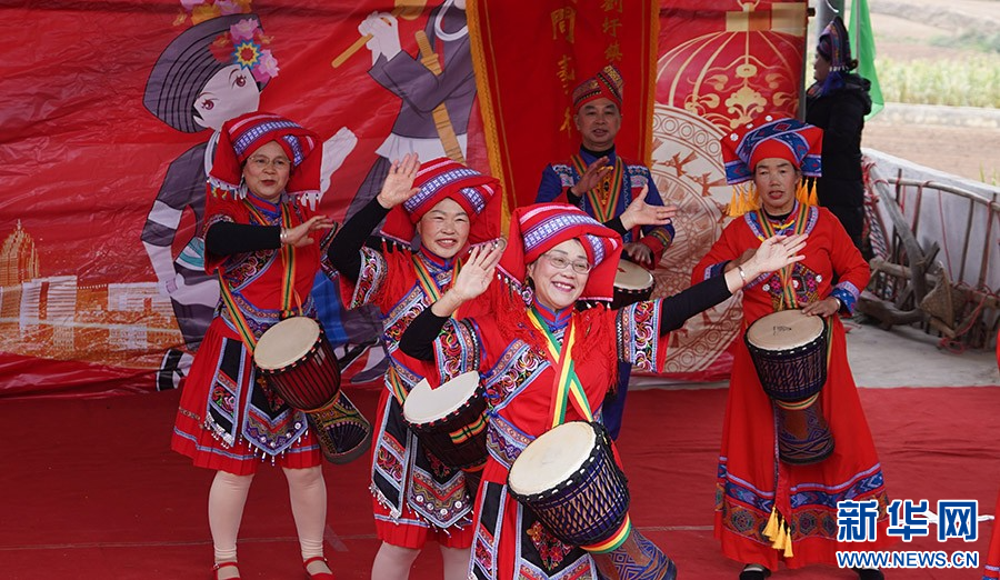 庙会上,身着壮族服饰的八音队吹响八音曲调,原生态嘹啰山歌非遗传承人唱起迎宾之歌。舞龙队穿梭于人群之中,传递着新春的祝福。那僚庙鼓、春牛舞以及狮子跳竹竿舞各类民俗表演活动轮番上演,精彩纷呈。