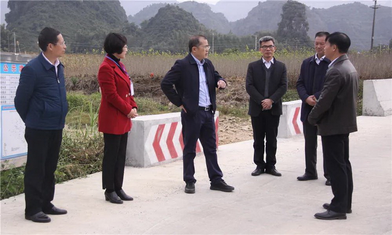自治区民宗委祝贺团深入福龙瑶族乡烽火社区拉村屯调研该屯拉村桥的建设情况