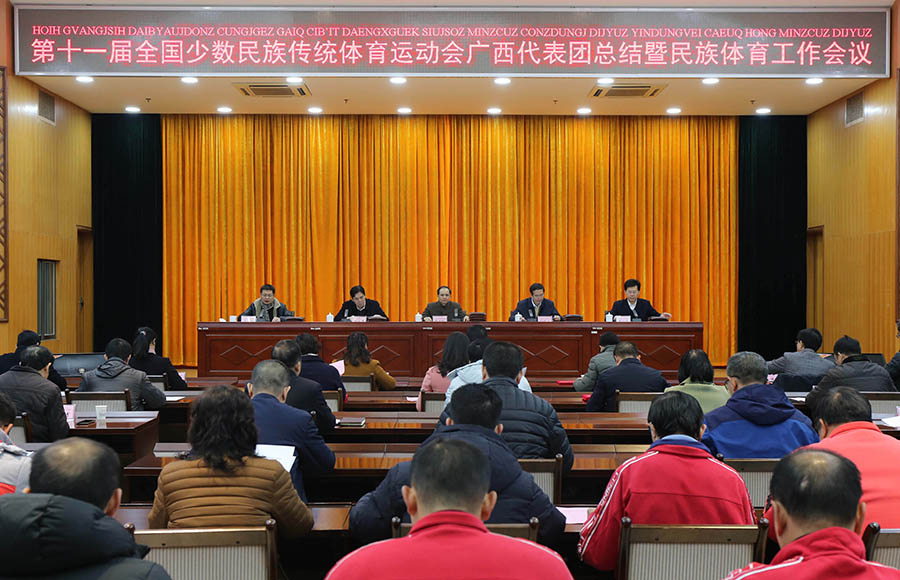 本报讯(记者 梁晴 黄云)12月17日,第十一届全国少数民族传统体育运动会广西代表团总结暨民族体育工作会议在南宁召开。会议全面总结广西代表团参加第十一届全国少数民族传统体育运动会的成绩及经验,表彰在运动会上作出突出成绩的先进集体和个人,研究部署下阶段全区民族体育工作,进一步推动广西少数民族传统体育事业蓬勃发展。自治区副主席黄俊华接见出席会议代表并讲话、合影。
