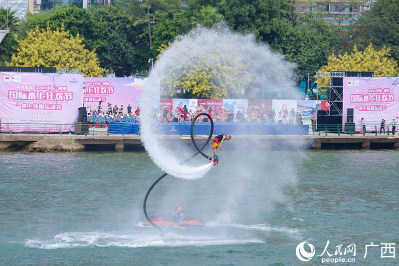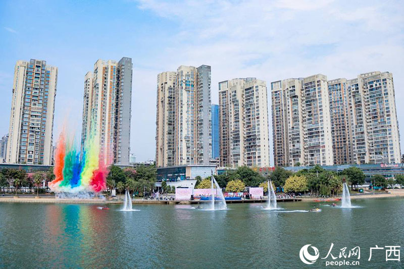 人民网柳州9月30日电 (吴明江)9月30日上午11时,2021中国柳州国际水上狂欢节暨水上休闲运动会开幕式在金沙角水域及亲水平台举行。