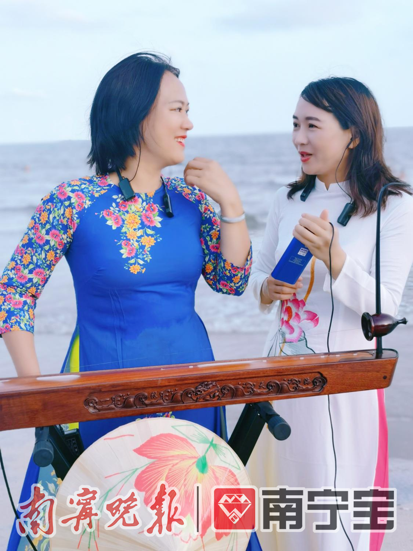 蒋凤(右)和苏海珍直播京族独弦琴演奏