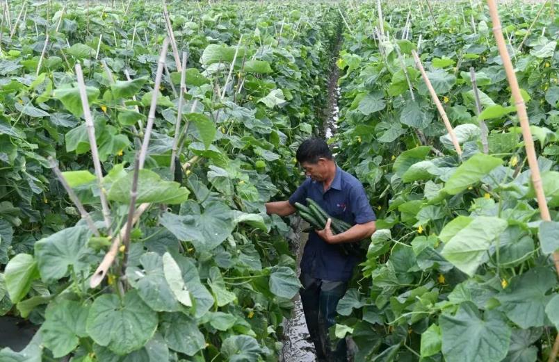 百林村村民正在采摘黄瓜。陆波岸摄