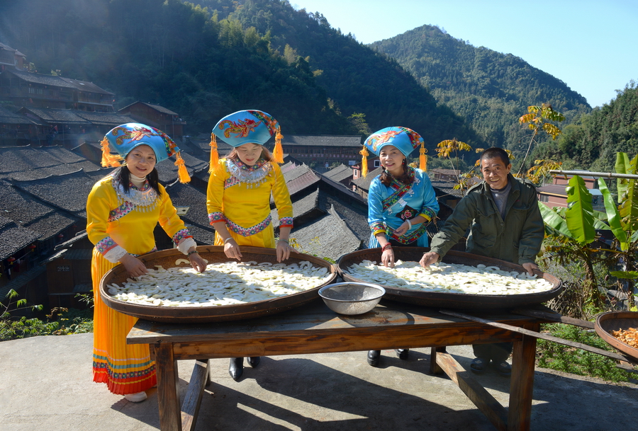 各民族文艺家在东宅江瑶寨采风。雷金息 摄影