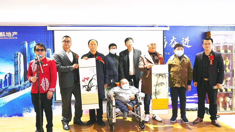 《慧画》残疾儿童作画赠送给与会嘉宾并合影留念