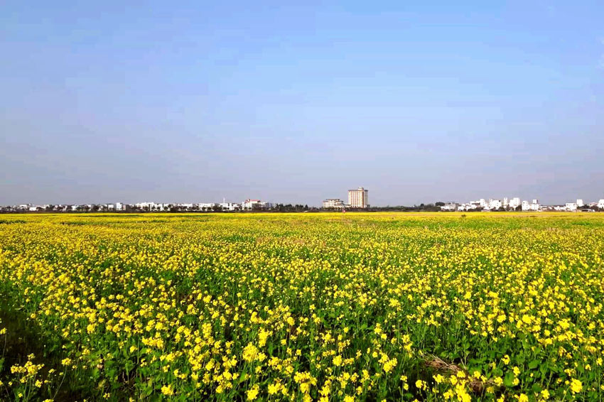 冬去春来,百花盛开,广西宾阳县古辣镇1300亩“油菜花海“如期盛开。微风吹过,油菜花轻轻摇曳,激起一层又一层黄色浪花,将乡村田野点缀得如诗如画。人们畅游在花海尽享春日悠闲,美好田园风光让人流连忘返。