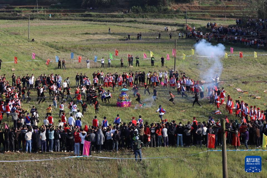新华社南宁3月11日电(记者杨驰)“春风得意二月二,翘首以盼好彩头。”3月11日,农历二月初二,在广西南宁市邕宁区中和镇的孙头坡,一年一度的壮族“二月二抢花炮”活动如约而至。民间素有“二月二,龙抬头”的说法,每年这一天,不少地方的壮乡儿女都用“抢花炮”这种传统体育竞技方式来祈福风调雨顺、五谷丰登。...