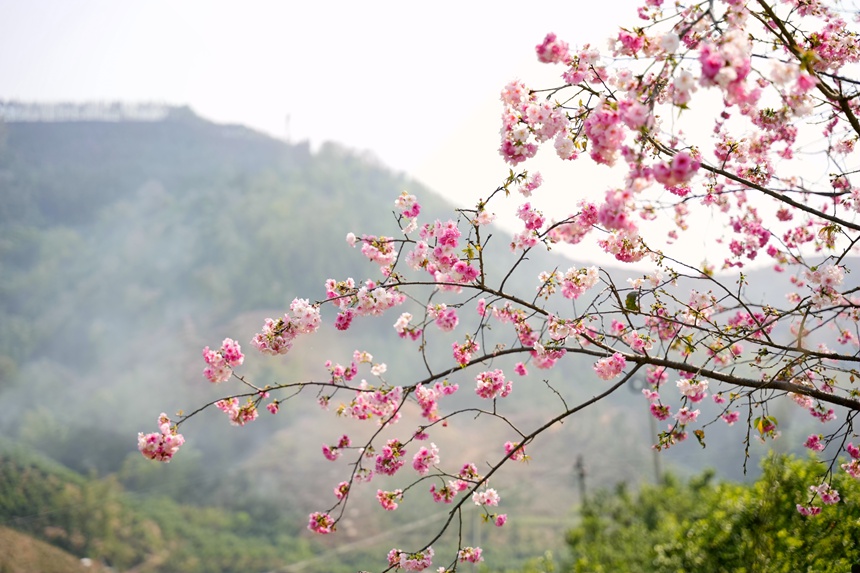 春色迷人。樱花开满枝头。簇簇樱花开放。芳菲三月,樱花盛开。一枝樱花入镜来。樱花盛开。樱花盛开。樱花与蓝天白云相衬映。 人民网西林3月18日电 阳春三月,广西百色市西林县古障镇泥洞村道路两旁的樱花绚烂绽放,一簇簇花朵开满枝头,伴随着春日的暖阳和微微的春风,婀娜多姿的樱花便不停地“摇...