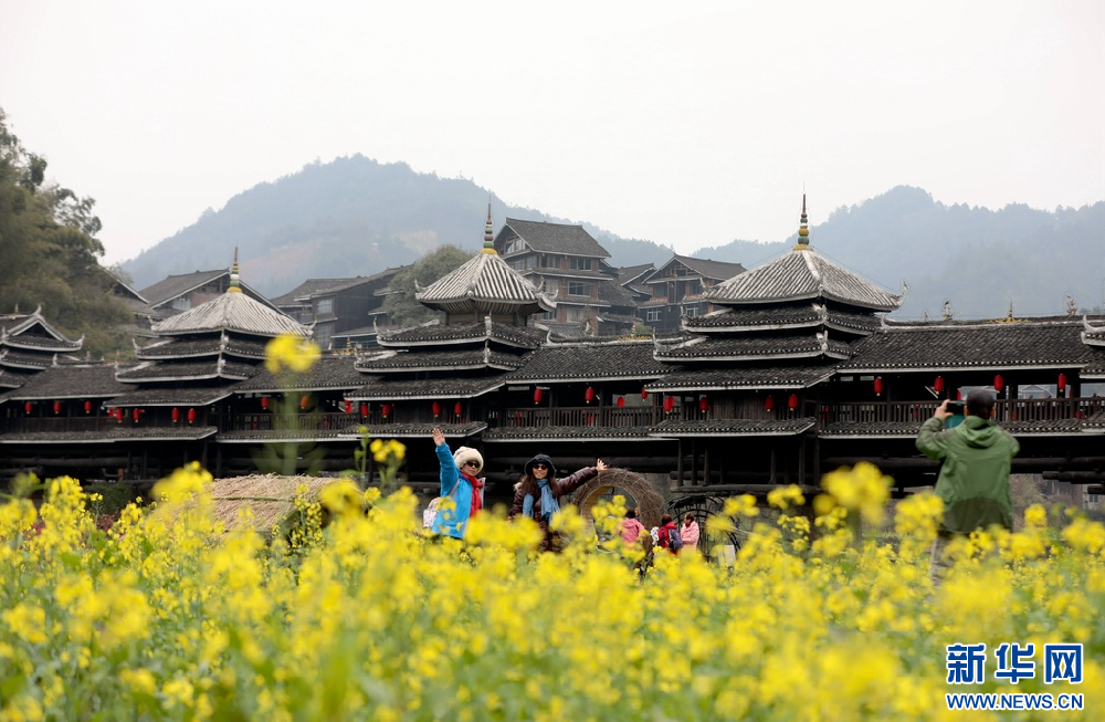 游客在程阳八寨景区赏花拍照。龚普康 摄 近日,广西三江侗族自治县林溪镇程阳八寨景区程阳永济桥头的桃花、油菜花争奇斗艳,红的胜火、黄的若金,与独具特色的风雨桥、吊脚木楼相互映衬,美不胜收,吸引众多游客前往赏花拍照。三江林溪镇程阳八寨景区桃花争奇斗艳。龚普康 摄三江林溪镇程阳八寨景区油菜花竞相绽放。龚普...