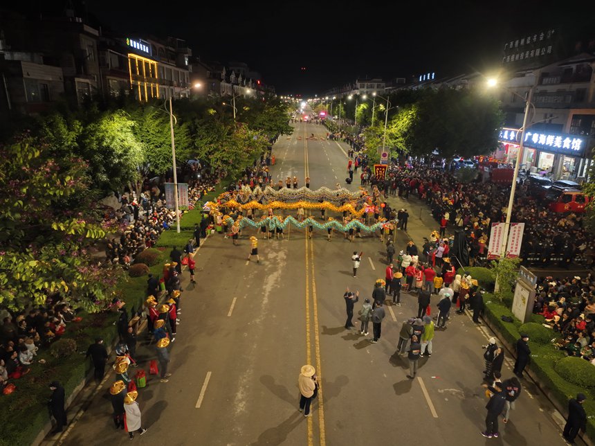 活动现场。莫超驿摄龙喷祥火。黄少将摄祥龙欢舞祥龙归海。龚家磊摄活动现场人山人海。黎玉聪摄火龙戏珠。黄少将摄 12月3日夜幕降临之际,广西德保县绵长宽阔的云山大道早已被人们围得水泄不通,一时间街道旁人山人海,热闹非凡。当晚8点整,大道上鼓乐喧天,四条“彩色火龙”在舞龙师的挥舞下,在...
