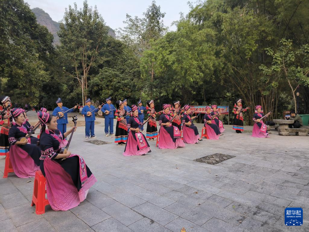 “咚、咚、咚……”尚未走下游船,一阵铿锵有力的鼓声便从远处传来,沿码头拾级而上,嘹亮的壮族山歌响起,为一场精彩的民族风情表演拉开序幕。 广西崇左市宁明县城中镇耀达村村民在进行民族风情表演。新华社记者 郭轶凡 摄 在广西崇左市宁明县城中镇耀达村,村民们对这番热闹景象早已习以为常。年逾五旬的壮族村民...