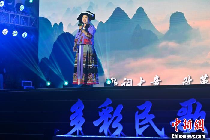 图为歌曲《欢迎远方贵客来》。 俞靖 摄图为歌曲《壮乡兄弟爱喝酒》。 俞靖 摄图为主播身着壮乡民族服饰直播推介民歌表演。俞靖 摄图为山歌少年演唱歌曲《心中的歌献给党》。俞靖 摄图为汇演现场。俞靖 摄图为小歌手身着侗族服饰入场表演。俞靖 摄图为歌曲《山歌对唱》。俞靖 摄图为歌曲《踩堂...