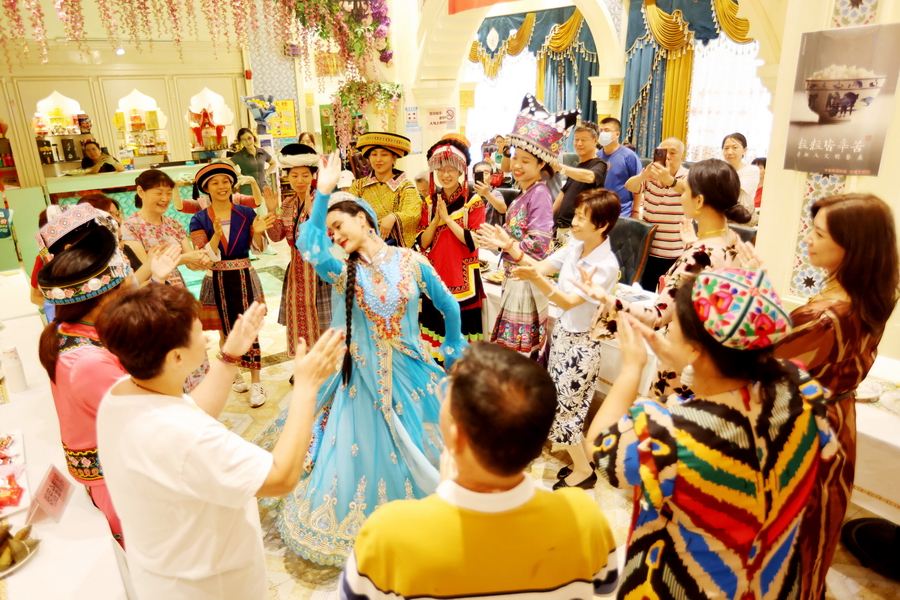 各民族同胞一起载歌载舞。各族同胞一起包粽子。民族服饰展演。民族服饰展演。民族美食展示。书法家现场挥毫,题词庆祝即将到来的端午节和古尔邦节。维吾尔族同胞跳起欢快的舞蹈,庆祝即将到来的端午节和古尔邦节。6月20日,南宁市兴宁区望仙坡社区各族干部群众和新疆在邕少数民族同胞举行联谊活动,一起包粽子、烤全羊,...
