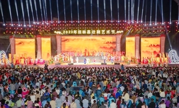 2023年田林县壮剧艺术节开幕式现场。 为全面推动田林县文化事业繁荣发展,打造田林特色文化品牌,充分展示田林县得天独厚的壮剧文化和自然资源,田林县于5月8日至5月12日举办壮剧艺术节,系列活动设有壮剧片区展演、特色美食农产品展销、花车巡游、千人长桌宴、艺术节开幕式晚会、滇黔桂三省区壮...