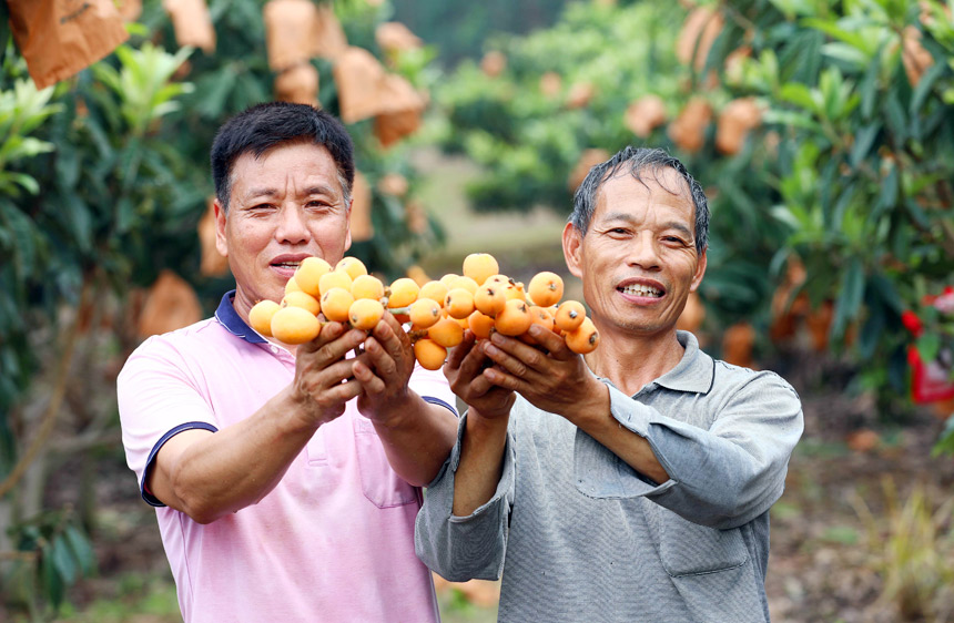 果农展示成熟的枇杷。在广西柳州市融安县大良镇石门村,游客正在挑选枇杷。网红主播与果农在“线上”进行枇杷直播。一名网红主播正在直播带货。航拍广西柳州市融安县大良镇石门村枇杷园。 人民网融安5月8日电 细雨茸茸湿楝花,南风树树熟枇杷。近日,又到了一年的枇杷成熟季,广西柳州市融安县大...