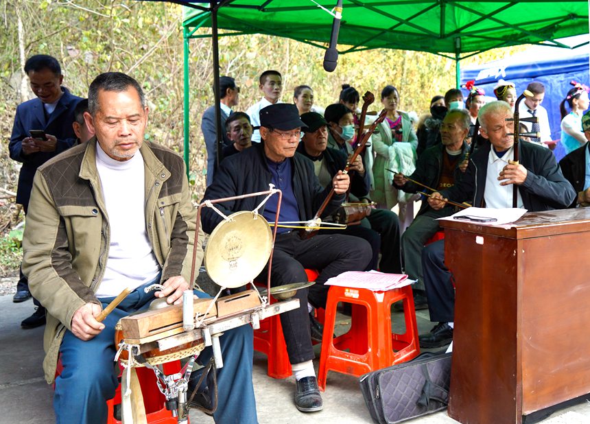 南路壮剧伴奏团队。 1月30日,2023年天保庙庙会在德保县马隘镇天保庙广场举办。南路壮剧的表演者们身着传统壮族服饰早早候场,个个精神抖擞、明艳动人。舞台下的村民们满怀期待,一场妙趣横生的南路壮剧徐徐展开。 演出现场,座无虚席,充满着喜庆的“年味”气氛。“新...