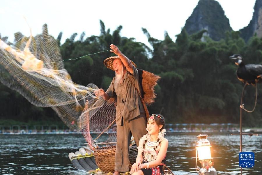 一名村民在漓江广西阳朔县兴坪镇段的竹筏上协助游客拍摄旅游影像(2022年8月25日摄)。广西桂林市雁山区大埠乡黎家村的一处采石场,经过生态修复,如今裸露的山体已经复绿(2022年4月11日摄,无人机照片)。这是在广西阳朔县兴坪镇拍摄的漓江风光(2022年8月25日摄,无人机照片)。这是漓江支流遇龙河畔的“网红村”——桂...