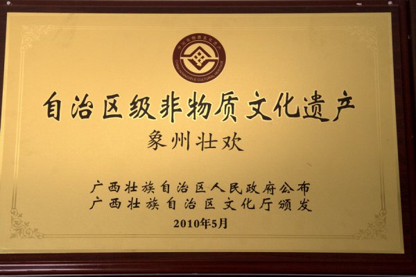 2010年象州壮欢获自治区非物质文化遗产称号 近日,中央宣传部、文化和旅游部、国家广播电视总局近日公布第九届全国服务农民、服务基层文化建设先进集体名单,346家单位荣获第九届全国服务农民、服务基层文化建设先进集体荣誉称号。 其中,广西壮族自治区象州县马坪镇公共文化服务中心荣获第九...